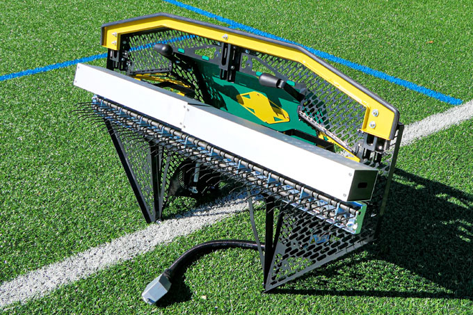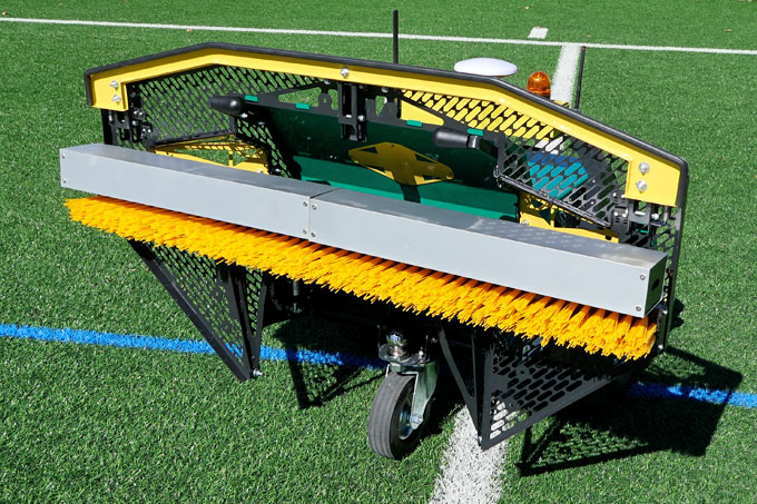 Frigør mandskab: Robotten klarer det monotone arbejde. Den børster, løsner og renser en 11-mandsbane på ca. 4 timer.