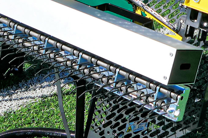 Børste & Fjederharve: Løsner effektivt kunstgræsset, rejser fibrene og fordeler granulatet jævnt.